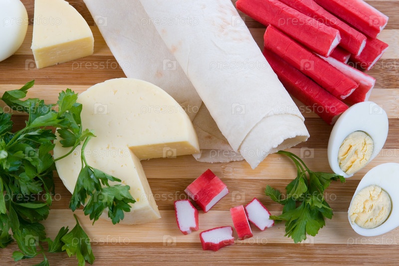 Ингредиенты для приготовления салата на столе