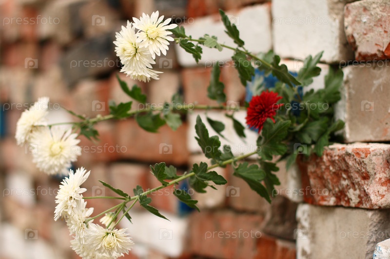 Цветы на стене из кирпичей и бетонных блоков