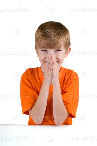Смеющийся мальчик, изолированный на белом фоне