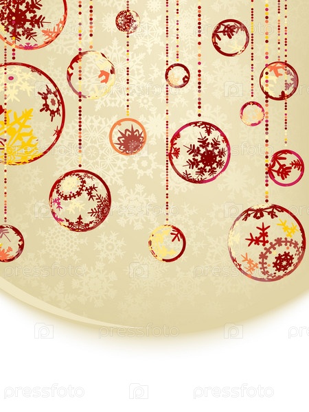 Новогодний фон с шариками и снежинками