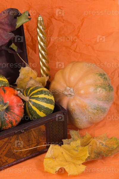 Зрелые тыквы на оранжевом фоне