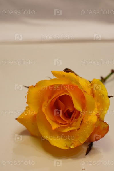 Красивая желтая роза с каплями росы крупным планом
