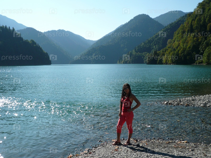 Женщина стоит на берегу горного озера