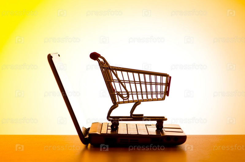 Силуэт ноутбука и тележки для покупок