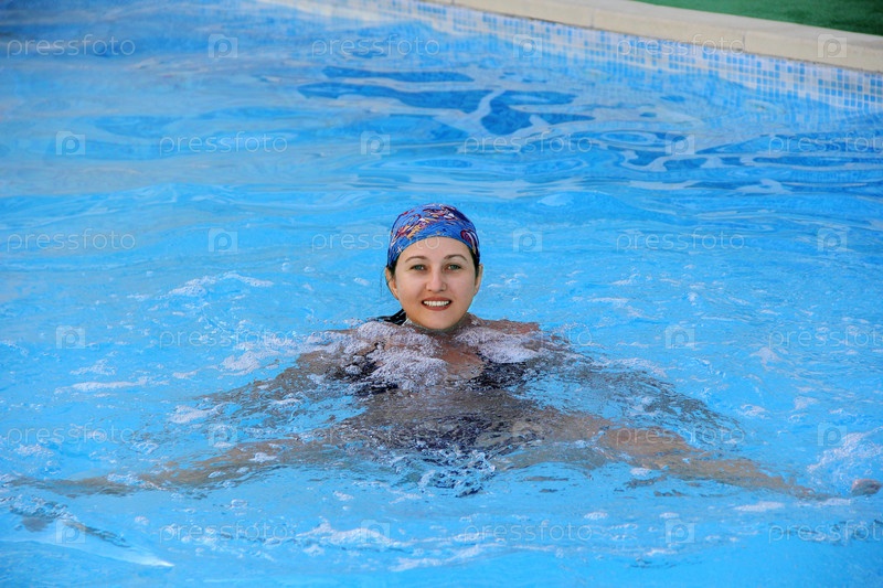 Девушка плавает в бассейне