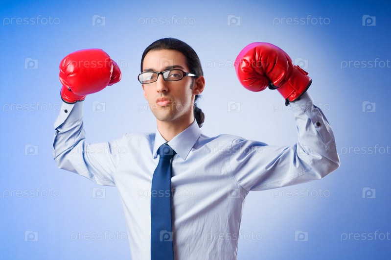 Бизнесмен в красных боксерских перчатках