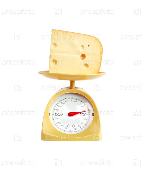 Кусок сыра на кухонных весах