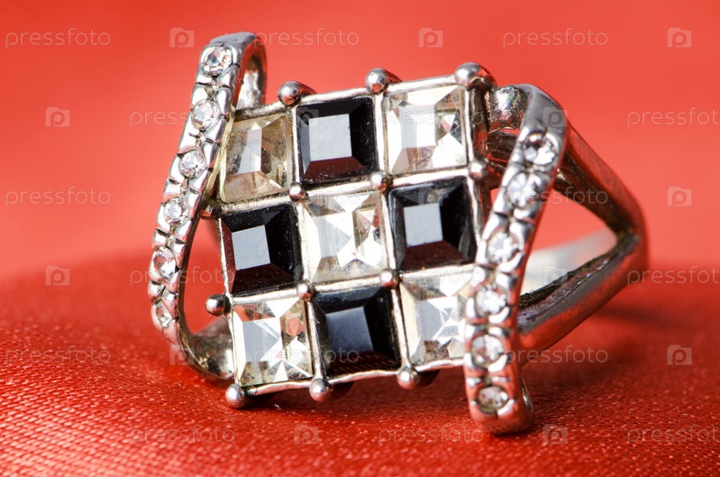Красивое кольцо на красном фоне