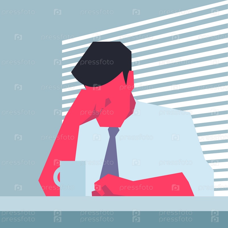 Бизнесмен, сидя за столом, подперев лоб. Ретро стиль иллюстрации