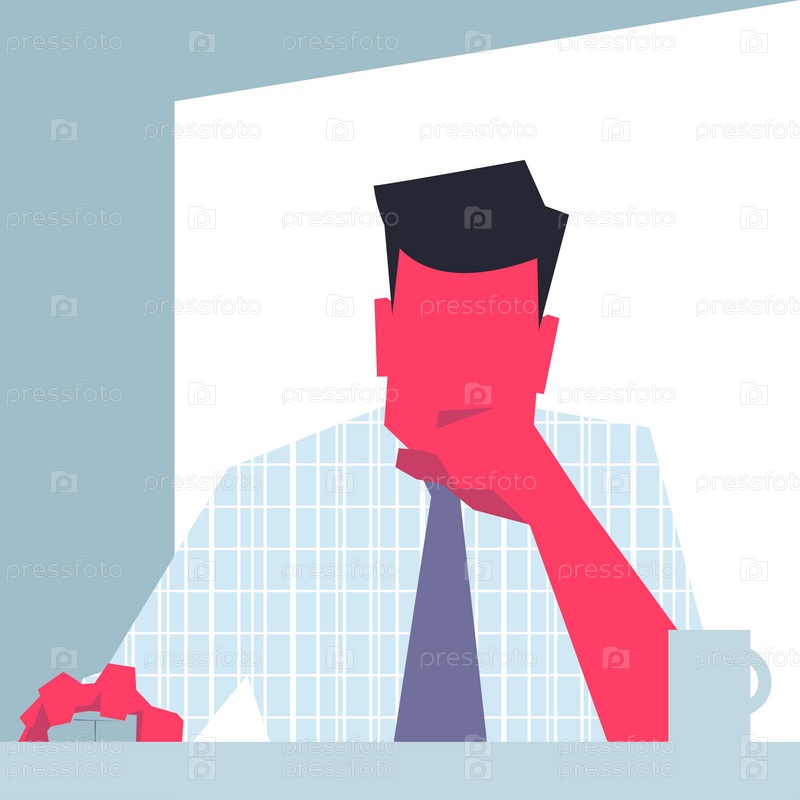 Бизнесмен, сидящий перед компьютером (с точки зрения монитора ПК), поддерживал свой подбородок, держа компьютерную мышь