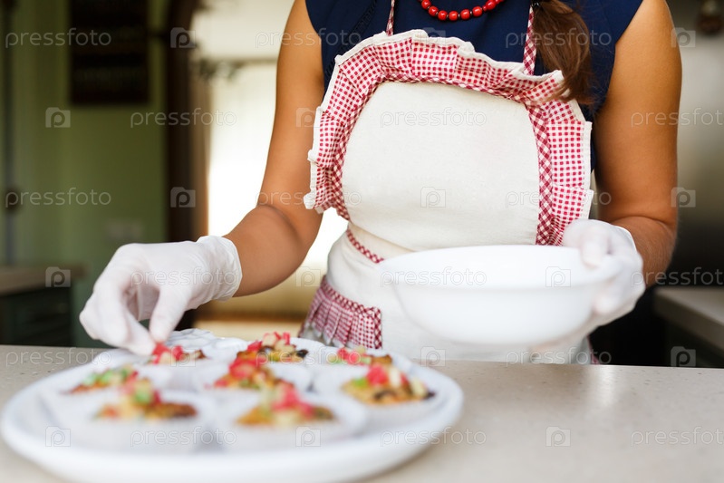 Молодая женщина надевает цукаты торты