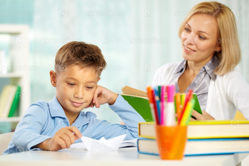 Мальчик с бумажным самолетиком во время занятия