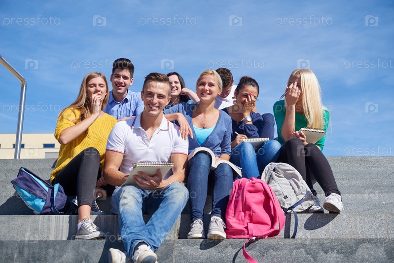 Студенты сидя на лестнице