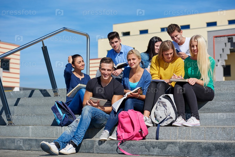 Студенты сидя на лестнице