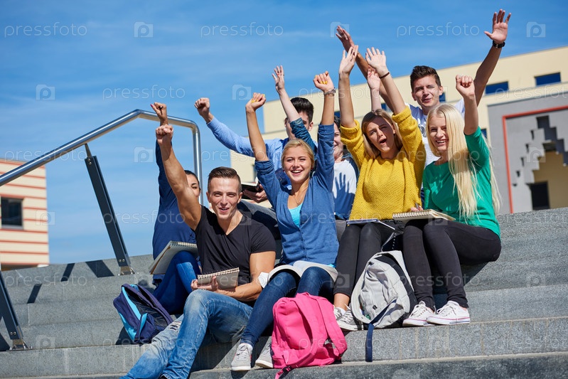 Студенты сидя на лестнице