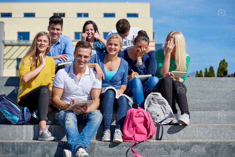 Студенты сидя на лестнице
