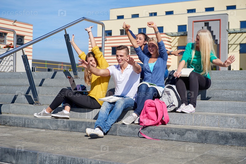 Студенты за пределами сидя на шагах