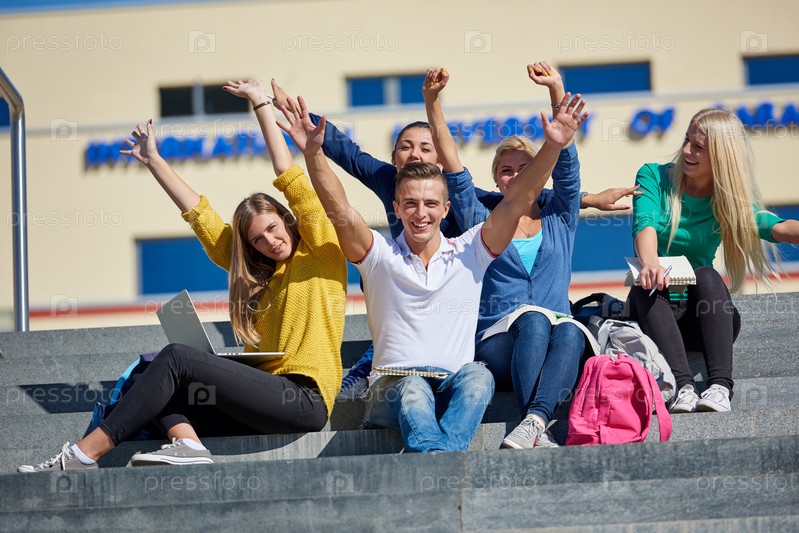Студенты сидя на лестнице