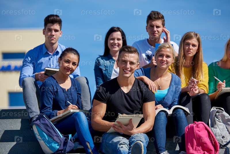 Студенты сидя на лестнице