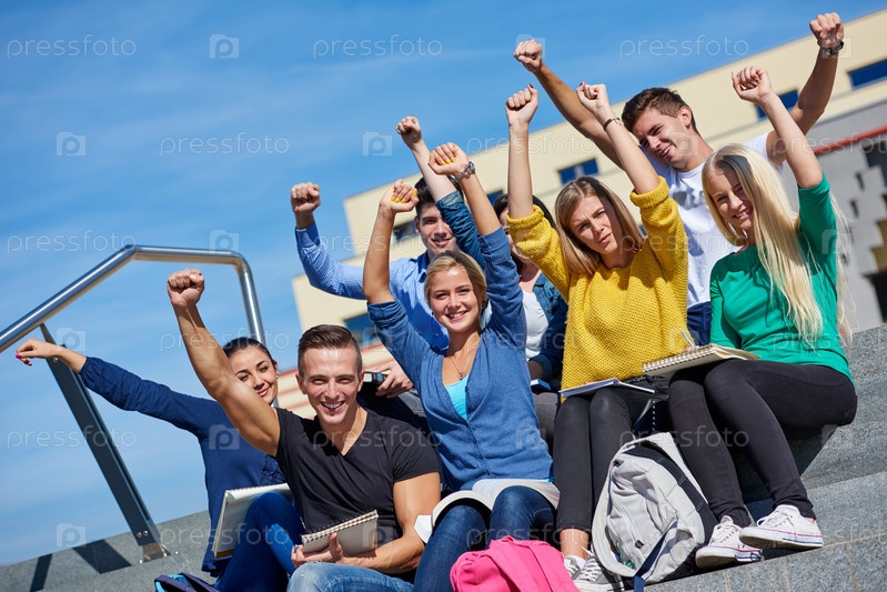 Студенты сидя на лестнице