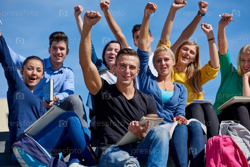Студенты сидя на лестнице