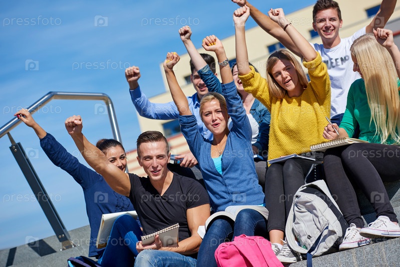 Студенты сидя на лестнице