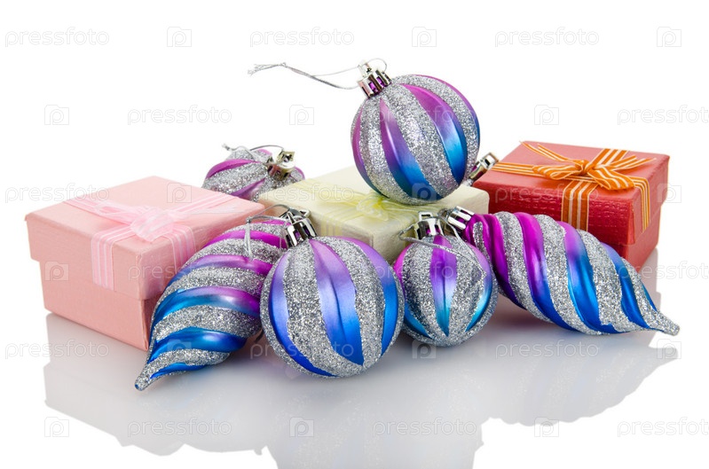 Елочные украшения на белом фоне