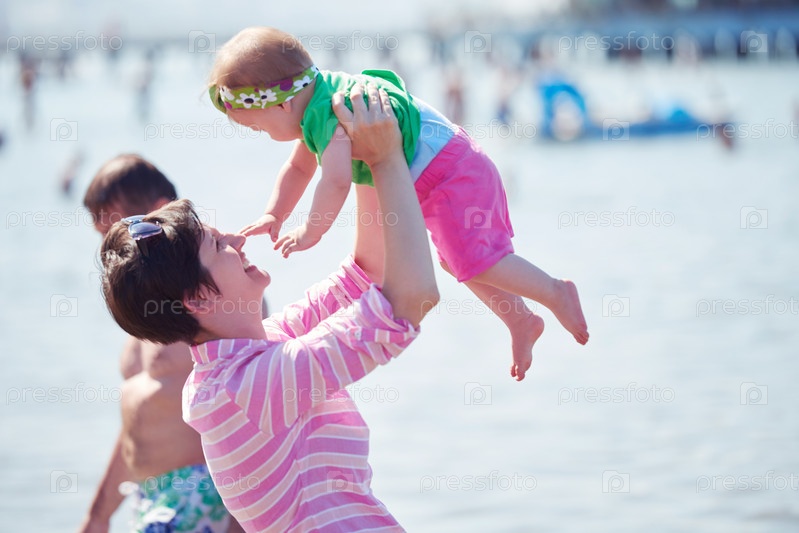 Мама и ребенок на пляже