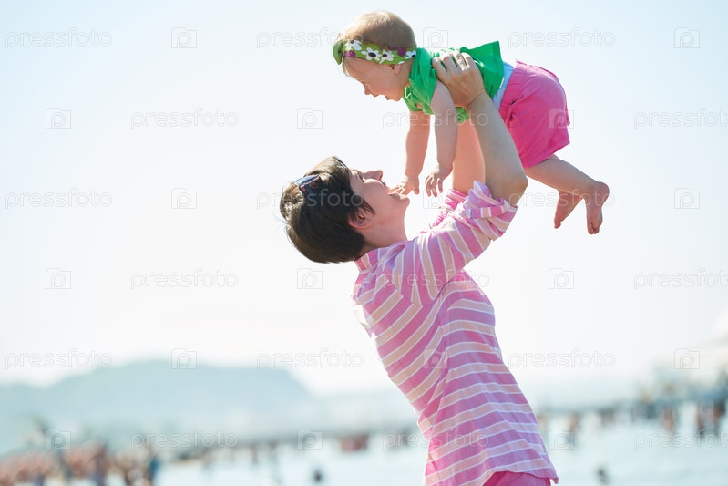 Мама и ребенок на пляже