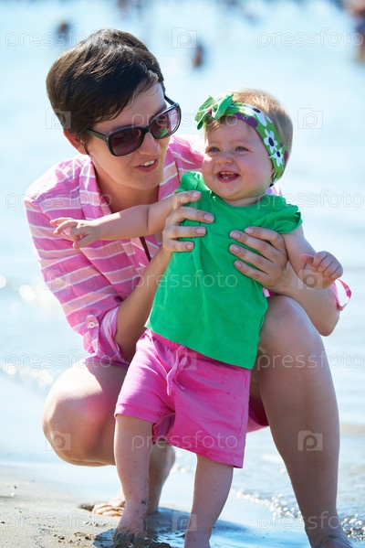 Мама и ребенок на пляже
