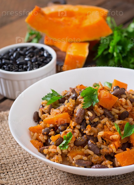 Домашнее мексиканское вегетарианское блюдо с рисом и фасолью