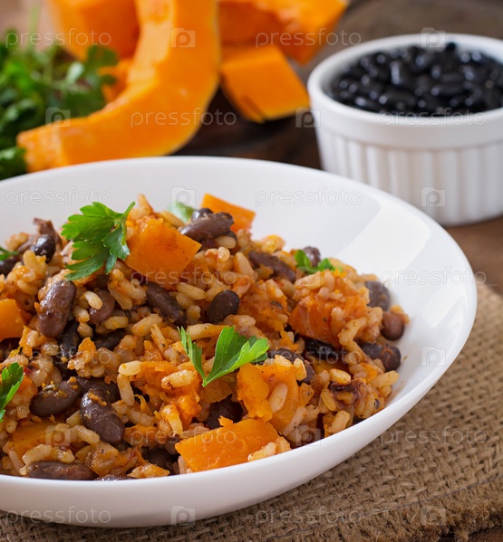 Домашнее мексиканское вегетарианское блюдо с рисом и фасолью