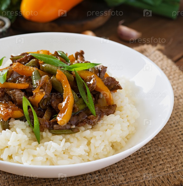 Мясо и овощи с рисом