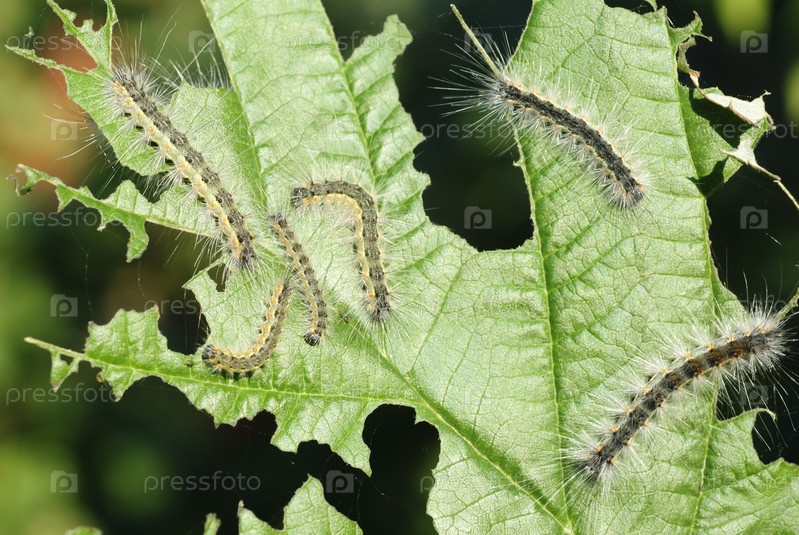 Гусеницы на листьях калины