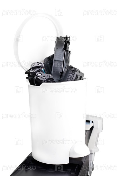 Картриджи принтера в мусорной корзине