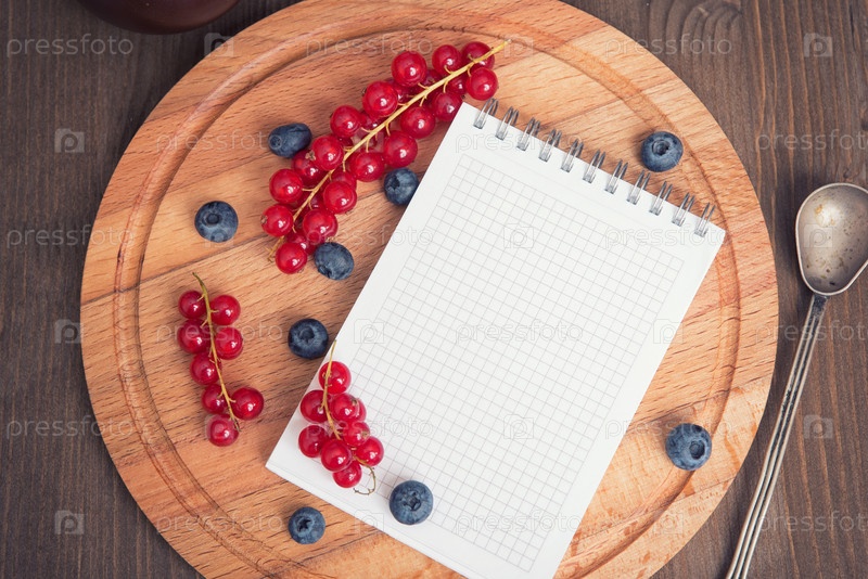 Красная смородина, черника и блокнот