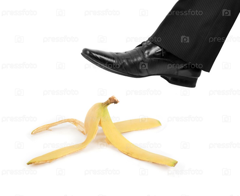 Мужская нога наступает на банановую кожуру