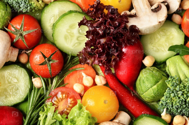 Свежие овощи с каплями воды