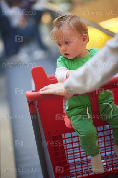 Ребенок в тележке в супермаркете