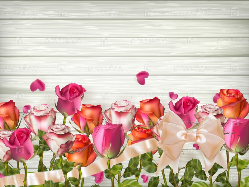 Красные розы с сердечками. EPS 10