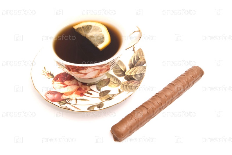 Чашка чая с лимоном и Шоколадная палочка
