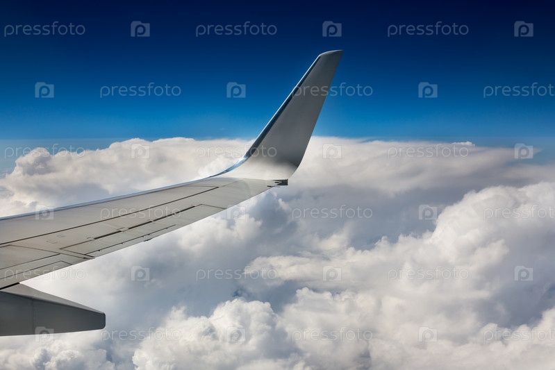 Часть крыла самолета на фоне неба