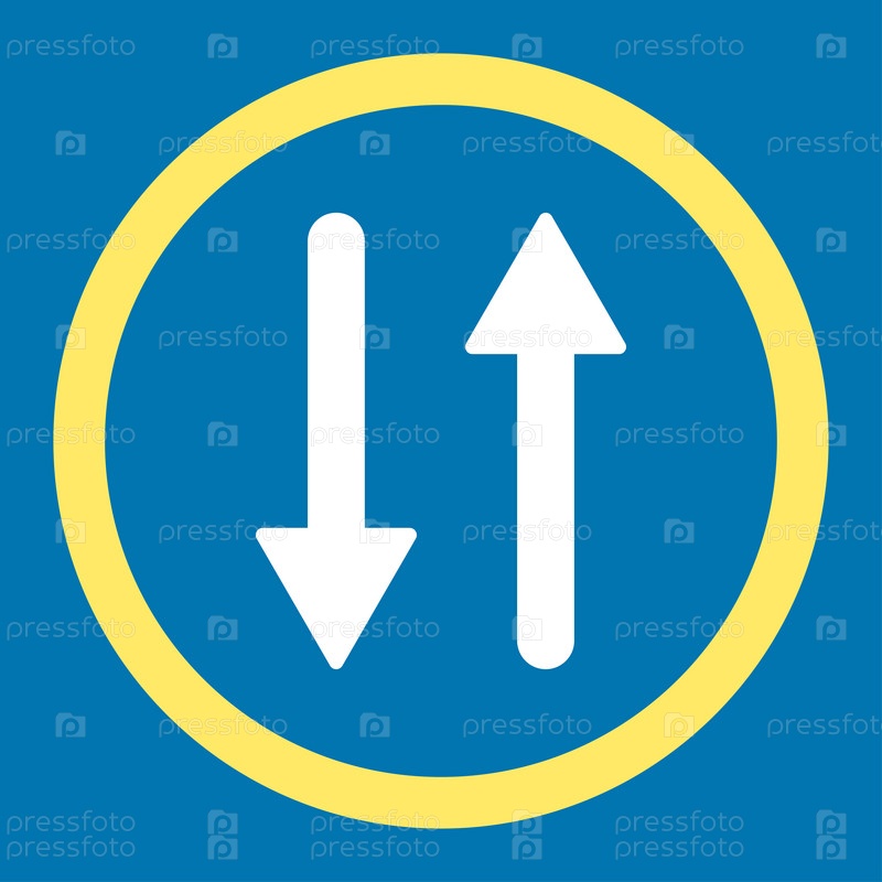 Обмен стрелки вертикальной плоской желтого и белого цвета округлые растровых значок