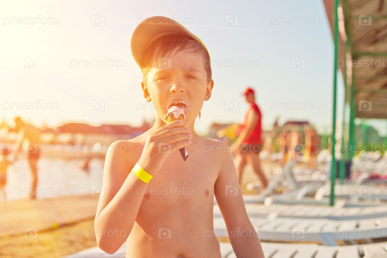 Мальчик ест мороженое