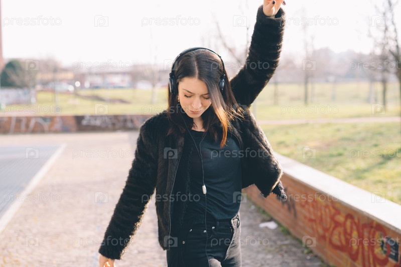 Молодая красивая женщина, слушать музыку с наушниками