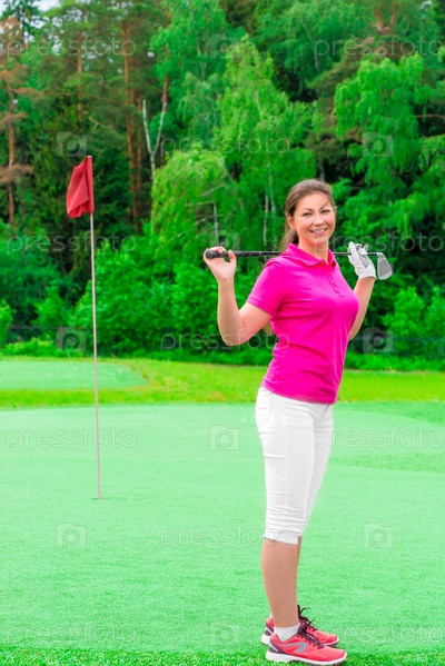 Молодая красивая девушка с клюшкой для гольфа