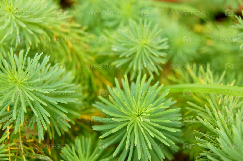 Зеленые иголки на елке, крупным планом