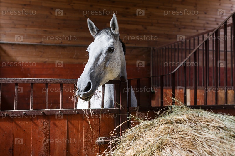 Белый конь ест сено