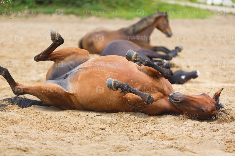Лошадь, лежа на песке