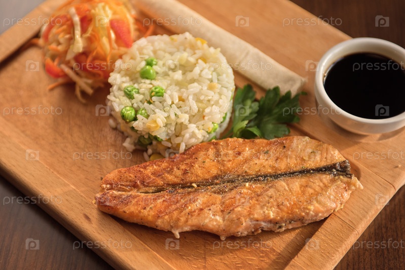Лосось на гриле с рисом